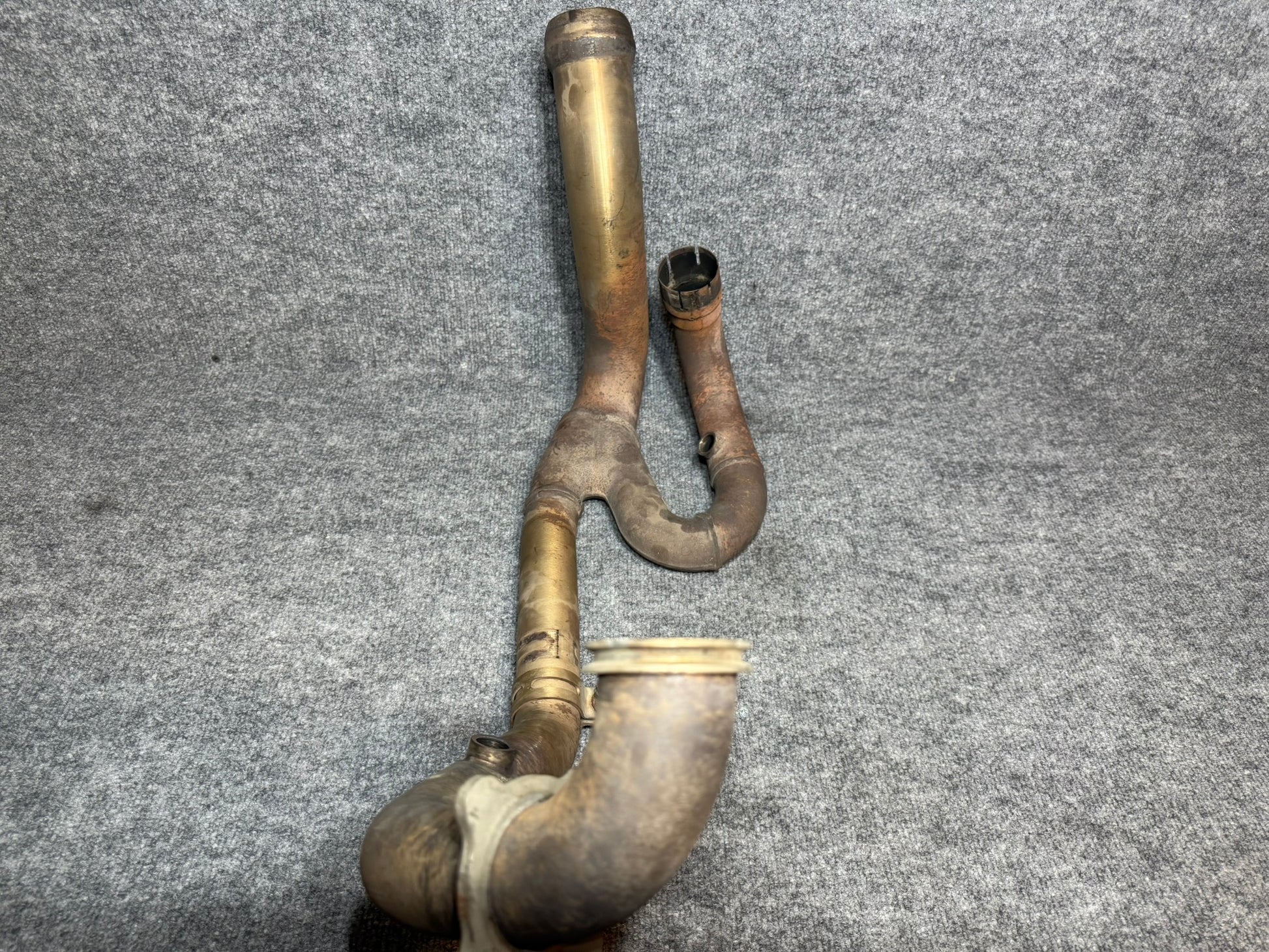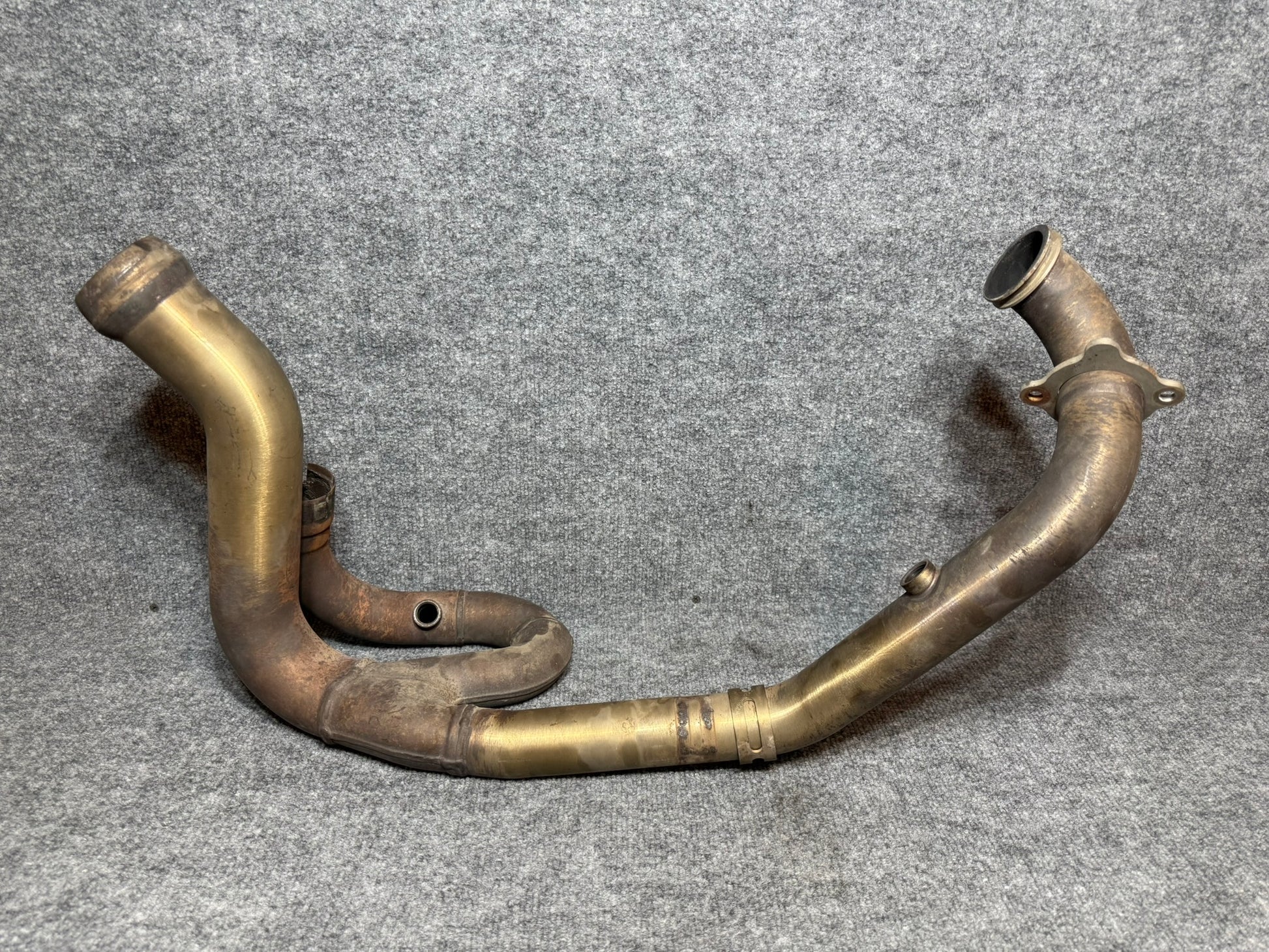 The 62605007000 KTM 990 Supermoto Exhaust Manifold Pipe, in excellent condition, was taken from a 2011 KTM 990 Supermoto. It serves as an ideal replacement for a damaged or rusted exhaust manifold on your bike.