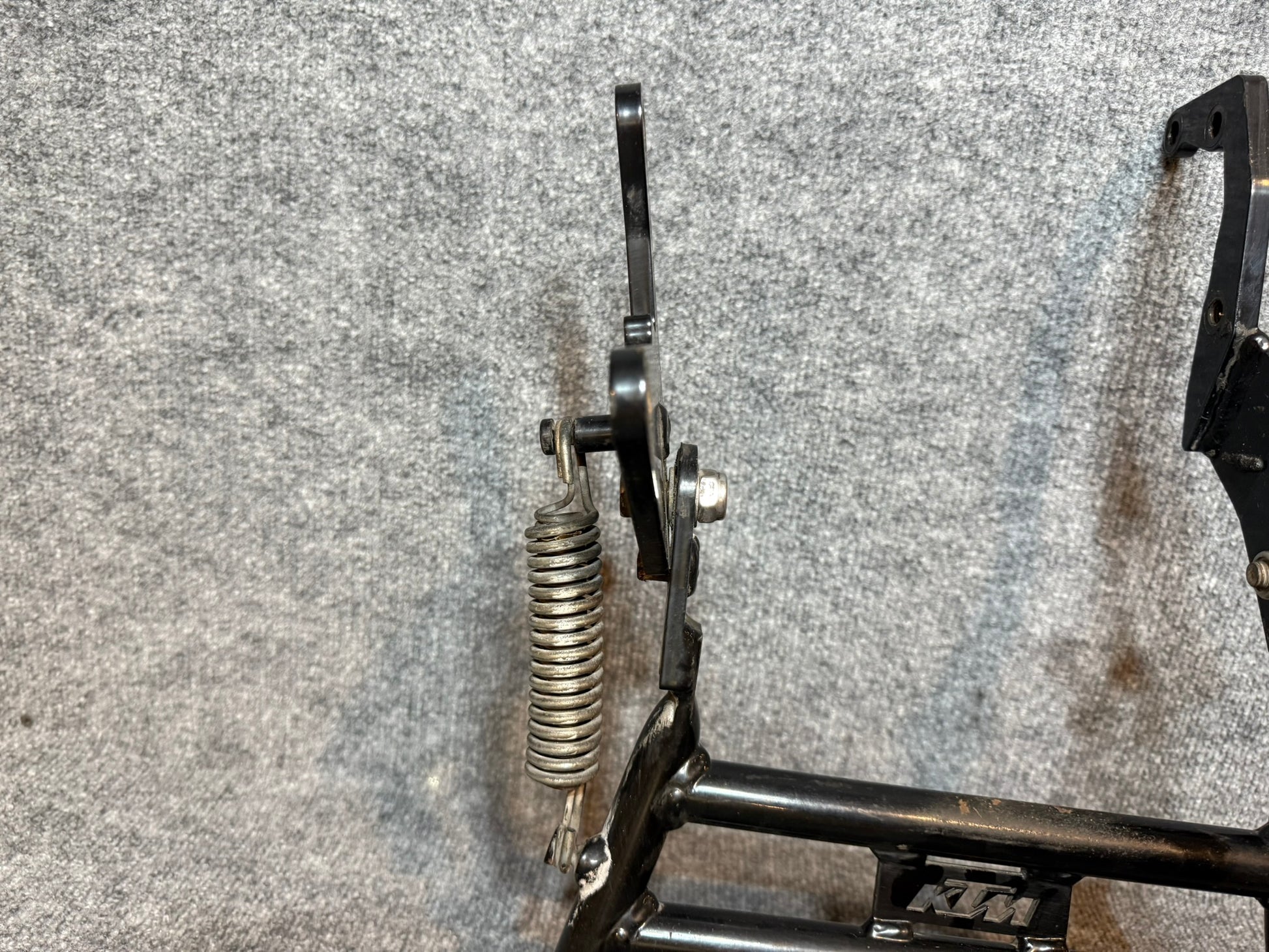 The KTM 990 Center Stand, in excellent condition, was removed from a 2011 KTM 990 Supermoto. It is an ideal replacement part.